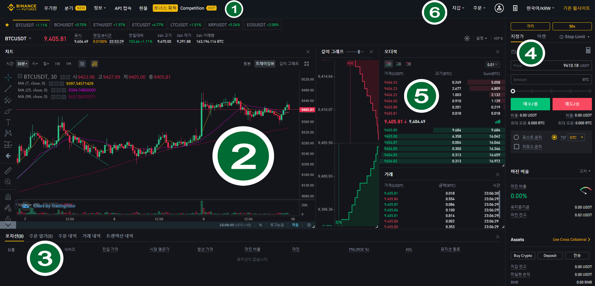 바이낸스 퓨처스/선물 화면 설명