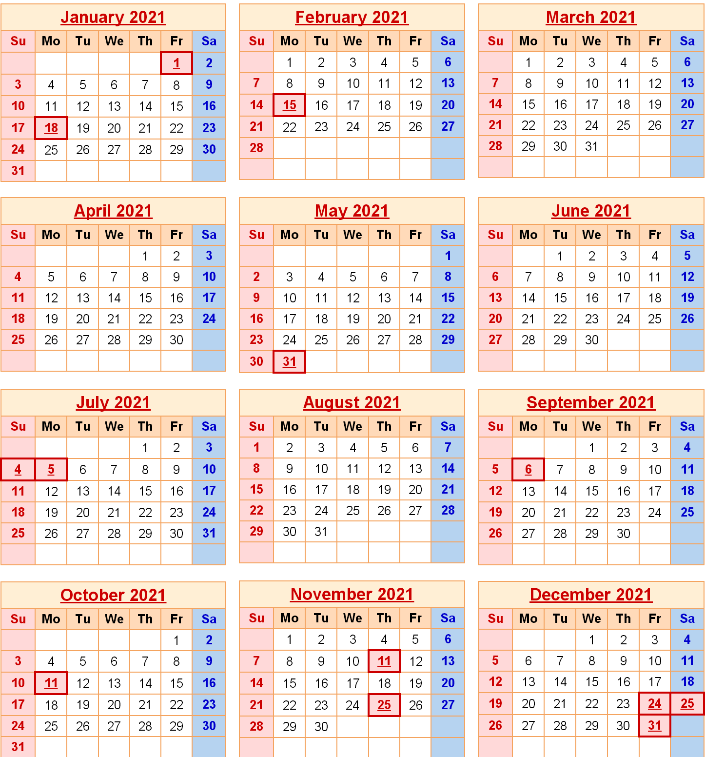 2020년 정말 100년에 한번 있을까 말까 하는 잊을 수 없는 한 해였습니다. 구글 트렌드를 통해 2020년 한 해를 보면 코로나 바이러스, 마스크, 틱톡, 미국 대선, 주식 등이 유행이었는데요. 2021년에서 미국은 물론 세계적으로 코로나로 변화된 사회에 잘 적응하고 하는 일 모두 잘 됐으면 좋겠습니다. 2021년 미국 공휴일과 달력을 알아보겠습니다. 미국 초기 대통령 조지 워싱턴의 생일을 기념하는 프레시던트스 데이와 콜럼버스 데이는 주에 따라 차이가 있습니다.