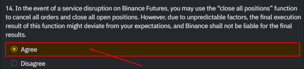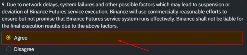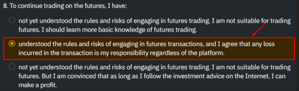 8번 답: Understood the rules and risks of engaging in futures transactions, and I agree that any loss incurred in the transaction is my responsibility regardless of the platform.