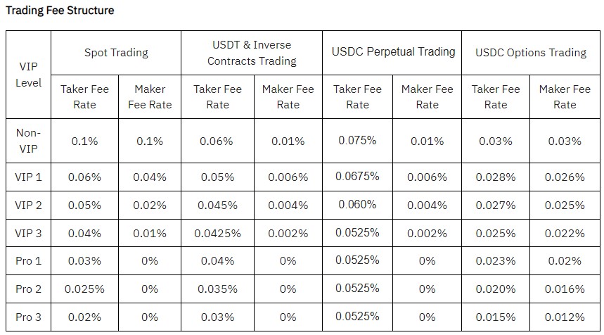 최신 바이비트 거래 수수료를 알아보겠습니다. 거래량이 많을수록 수수료가 낮아지는 VIP 회원등급제로 현물, 선물, 옵션거래마다 테이커와 메이커 수수료로 나누어져 있습니다. 테이커를 시장가로 바로 매매할 때 적용되며 메이커는 지정가 거래 수수료입니다.