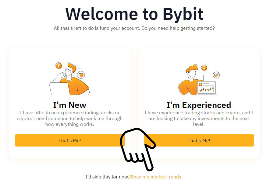 3. 초보인지 경험이 있는지 물어보는 화면이 나오는데 아래 Show me market trends를 클릭하면 마켓 화면으로 이동합니다.