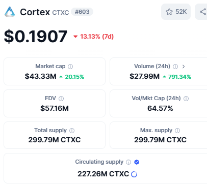 코르텍스코인의 시세는 암호화폐 시장의 전반적인 흐름과 기술 발전 상황에 따라 변동성이 큽니다. 시가총액은 시장의 유동성 및 거래량에 따라 달라지며, 실시간 데이터는 코인마켓캡(CoinMarketCap)이나 코인게코(CoinGecko) 등의 사이트에서 확인할 수 있습니다. 일반적으로 기술적 개발과 시장 트렌드가 가격에 영향을 미칩니다.