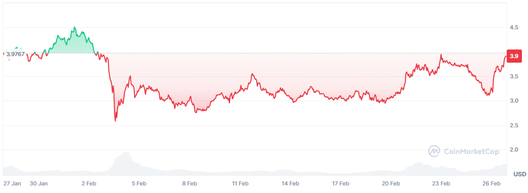 2025년 2월 26일 기준, TIA 코인의 가격은 약 3.89달러입니다.