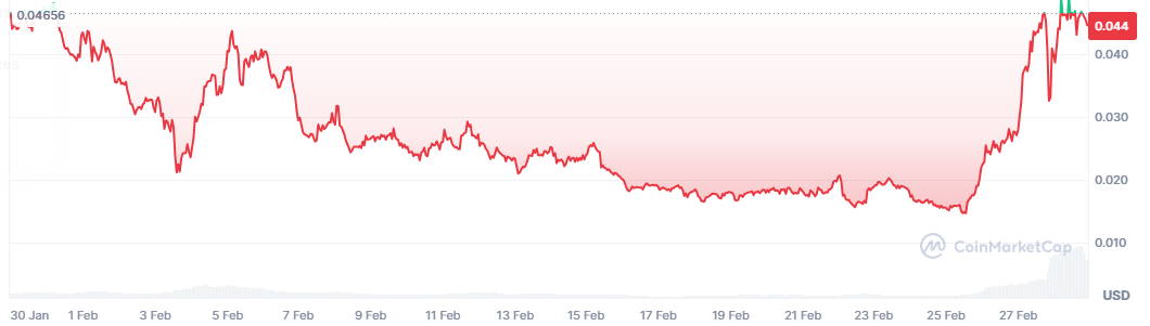 2025년 2월 28일 기준, ALCH 코인의 가격은 약 $0.04476입니다. 이는 전일 대비 약 0.35% 상승한 수치입니다. 최근 24시간 동안의 최고가는 $0.04980, 최저가는 $0.03319를 기록하였습니다. 시가총액은 약 475.64 BTC로, CoinGecko에서 785위를 차지하고 있습니다.