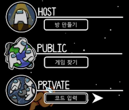 게임 최소 인원은 4명이며 10명까지 온라인으로 같이 플레이할 수 있습니다. 온라인에 클릭하면 닉네임을 정하는 곳, 방 만들기, 게임 찾기, 코드 입력 메뉴가 나오는데 방 만들기는 내가 호스트가 되어 게임 설정을 할 수 있고 게임 찾기는 랜덤 게임에 들어갈 수 있고 코드 입력은 게임마다 고유 코드가 있는데 코드를 입력하여 특정방에 들어가는 방법입니다. 친구들과 같이할 때 이 방법을 사용하면 됩니다.